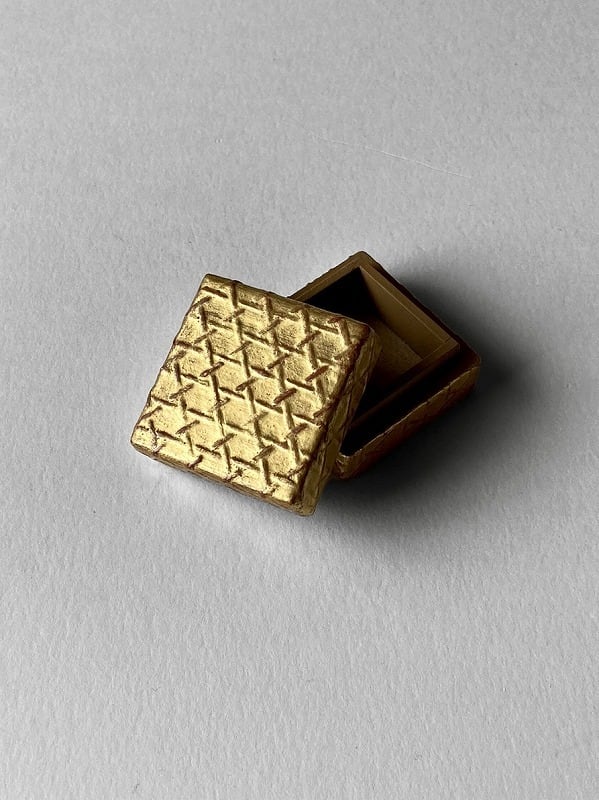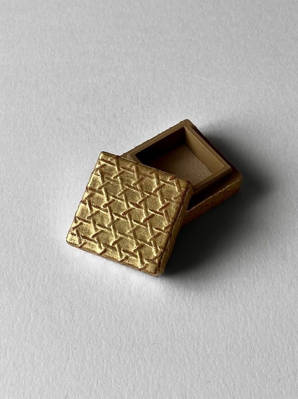 桐木地小箱にボローニャ石膏、パスティリアでレリーフ装飾。
